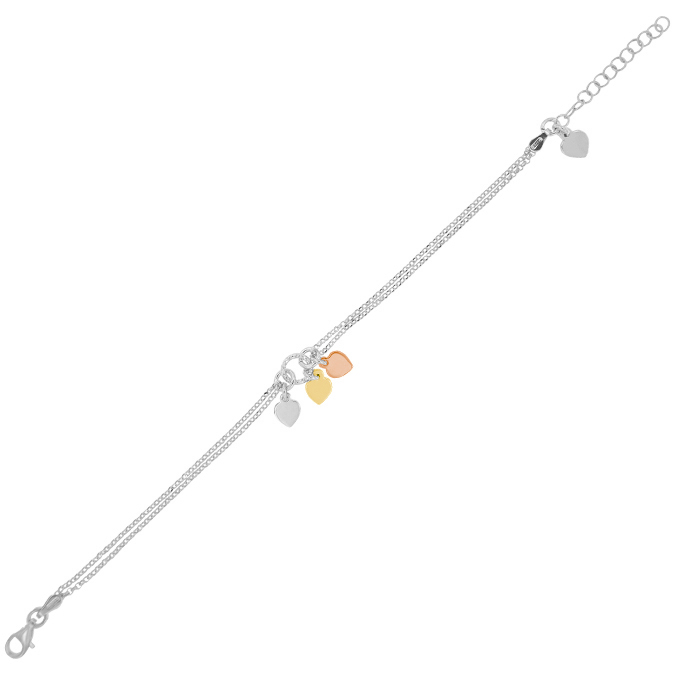 Bracciale doppia catena con cuori pendenti lucidi – placcato oro, rosé e rhodiato