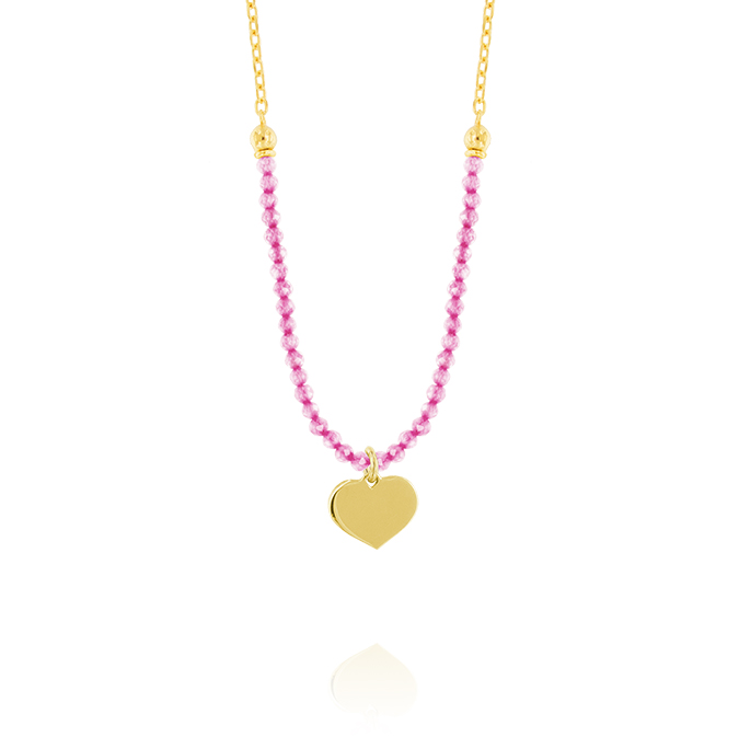 Collana con pietre rosa e cuore – placcato oro