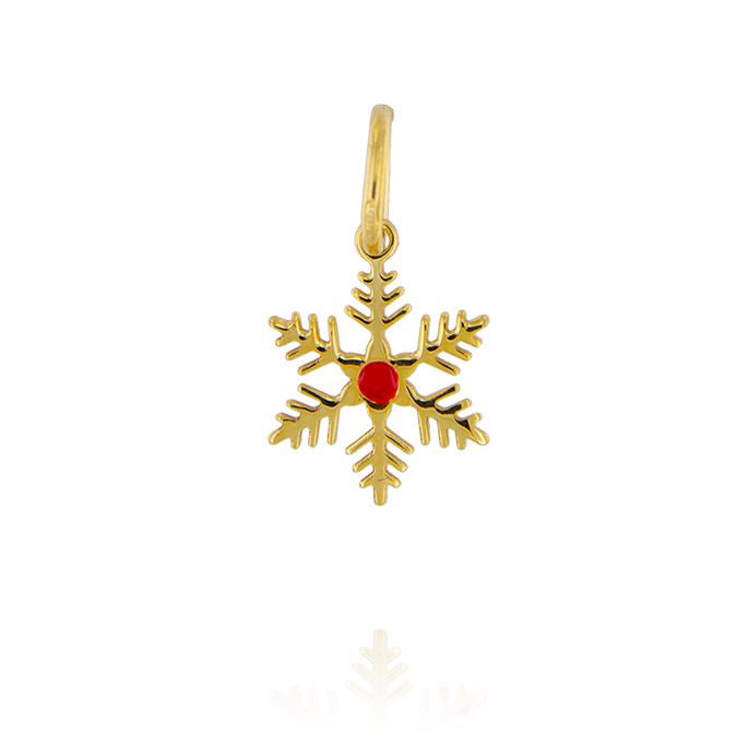 Ciondolo fiocco di neve con smalto rosso al centro – placcato oro
