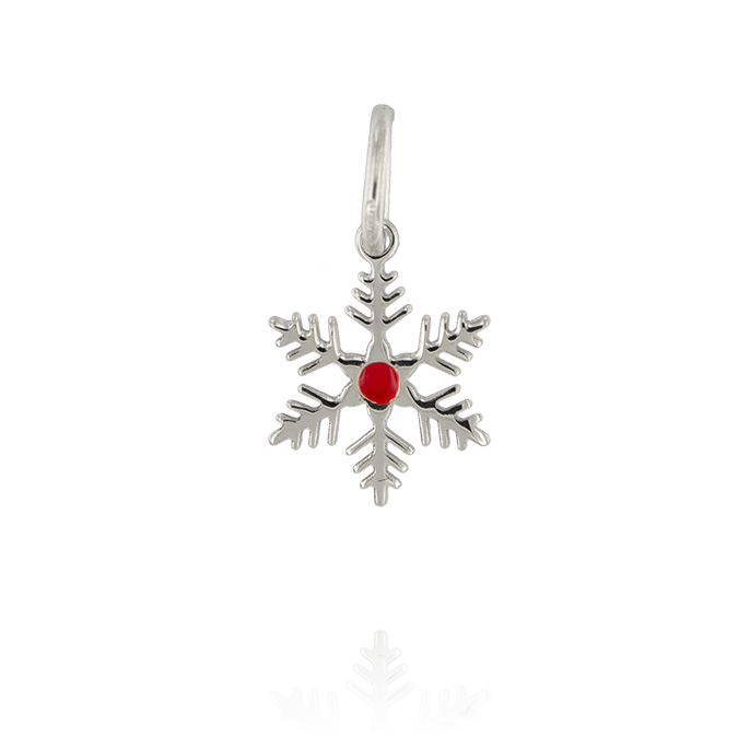 Ciondolo fiocco di neve con smalto rosso al centro – rhodiato