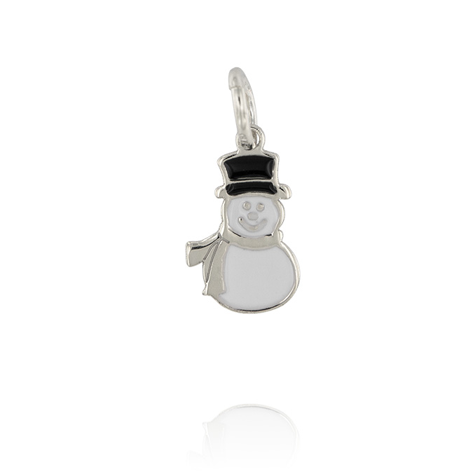 Ciondolo pupazzo di neve con smalto – rhodiato