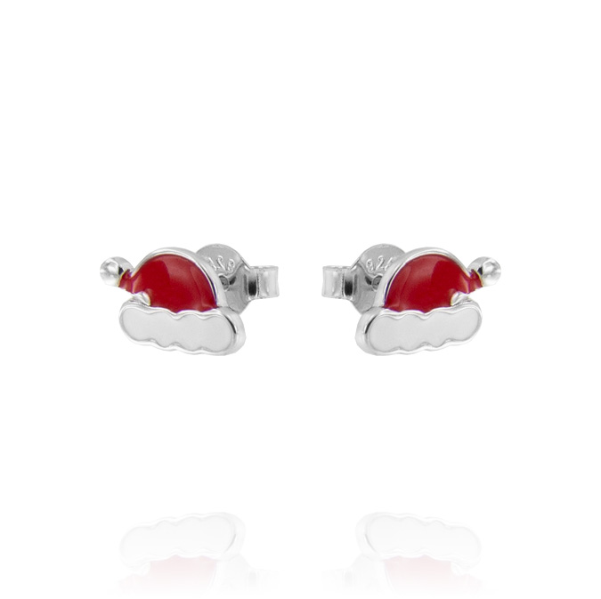Orecchini cappello di Babbo Natale con smalto bianco e rosso – rhodiato